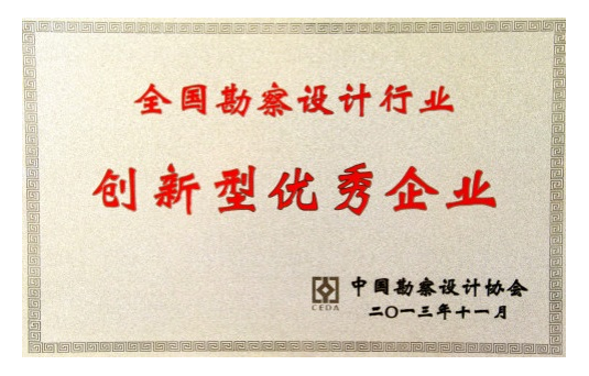 2013年被中國勘察設計協會評為 “中國勘察設計行業創新型優秀企業”