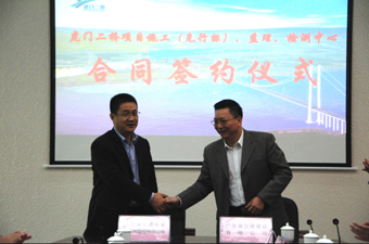 我公司工程检测中心中标广东虎门二桥质量检测控制中心,2013年12月18日下午,项目签约仪式在广东省公路建设有限公司虎门二桥分公司驻地举行,广东省公路建设有限公司魏浩华董事长及我公司曹荣吉副总裁分别代表双方签字。广东省交通集团董事长、党委书记李静,广东省公路建设有限公司总经理、党委副书记王康臣,广东省公路建设有限公司虎门二桥分公司总经理崖岗等建...